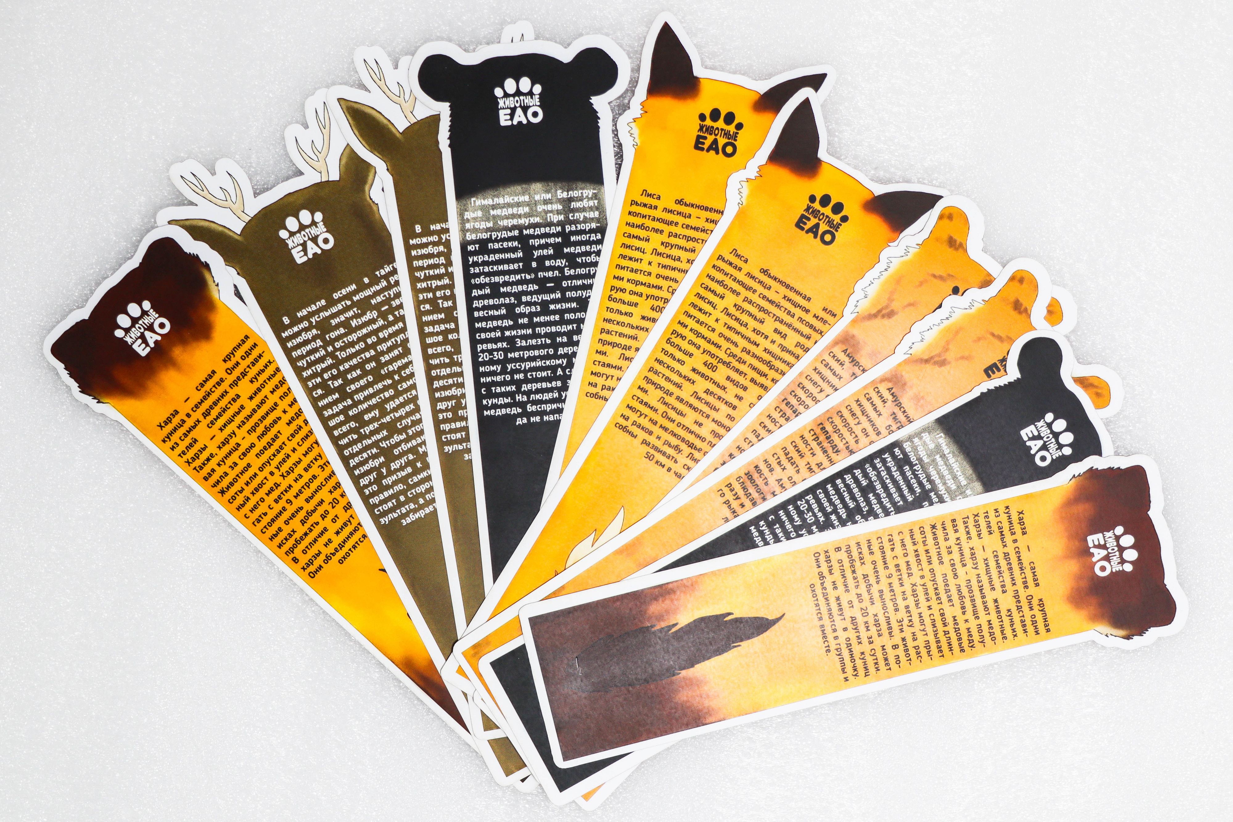 Набор книжных закладок с фактами о фауне Еврейской автономной области.